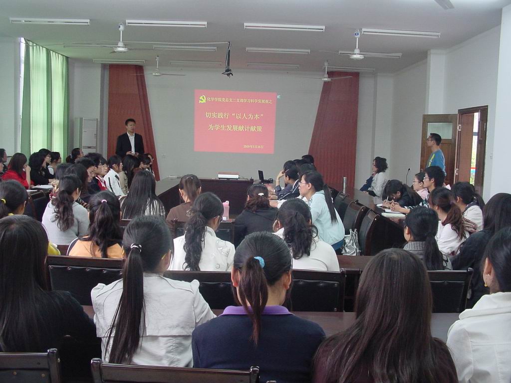党总支学生第二支部在实验大楼学术报告厅开展了以“切实践行‘以人为本’,为学生发展献计献策”为主题的深入学习实践科学发展观的活动。活动由院党总支副书记李荣教授主持,支部全体党员及各年级有考研意向的同学参加了此次活动。