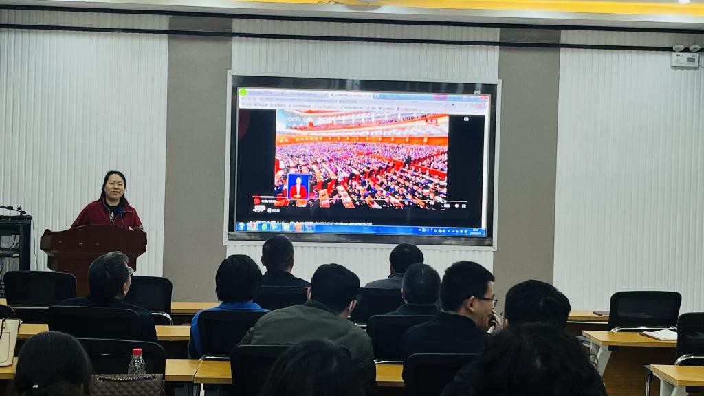 党委书记卢洪英为学院教工第一、二党支部全体党员讲学习贯彻党的二十大精神专题党课。