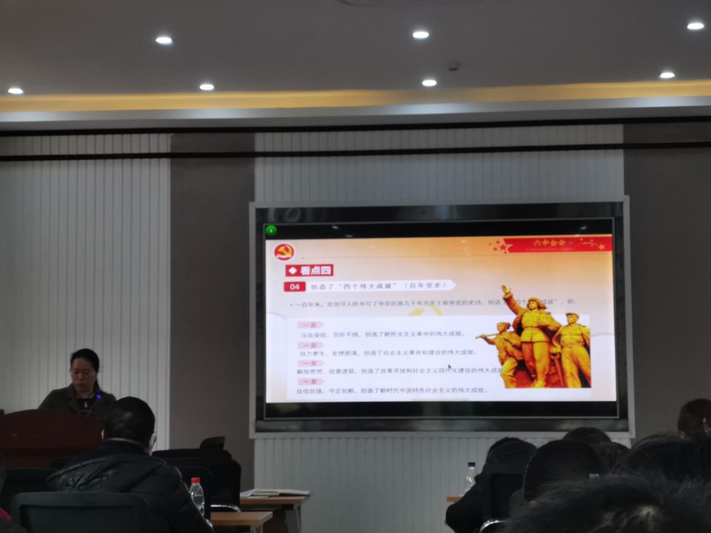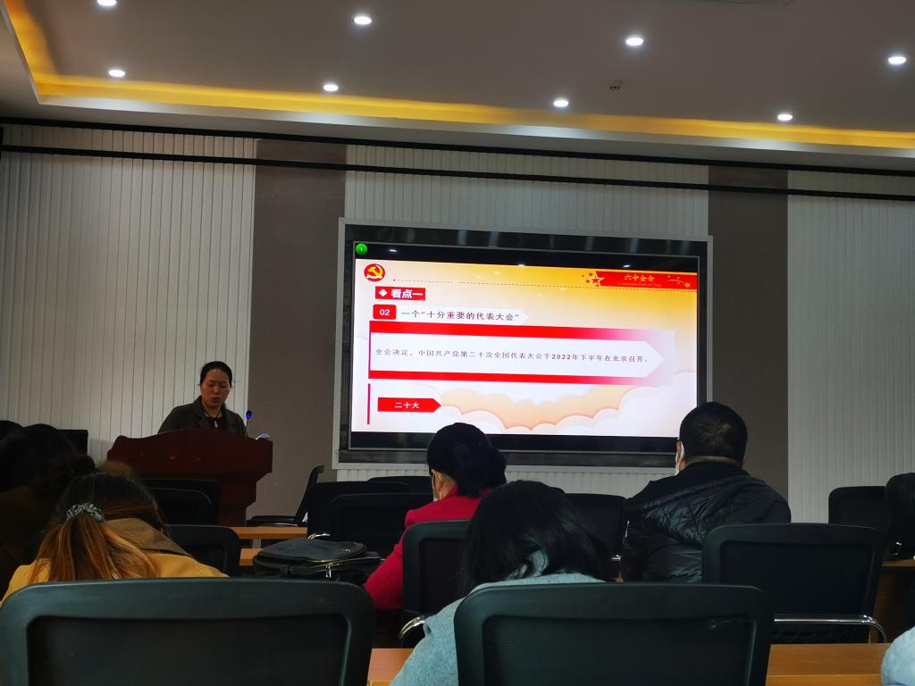 为深入学习宣传贯彻党的十九届六中全会精神,122咪咪爱 党委利用学院集中时间召开面向全体教职员工的关于党的十九届六中全会精神专题学习研讨会,会议由学院党委副书记卢洪英同志主持,并做专题党课报告