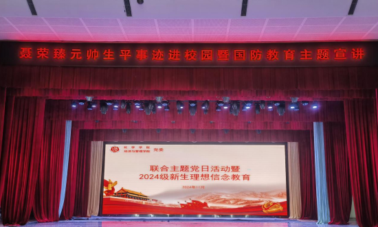 党委和经济与管理学院党委特别邀请聂荣臻元帅陈列馆带来“聂帅生平事迹进校园暨国防教育”主题宣讲,在校友会堂演出厅联合举办了一场题为“坚定理想信念,强化责任担当”的特别的新生入学教育活动和党员主题党日活动。主题团日活动。本次活动两个学院师生党员、青马班成员以及2024级新生共900余人参加活动。