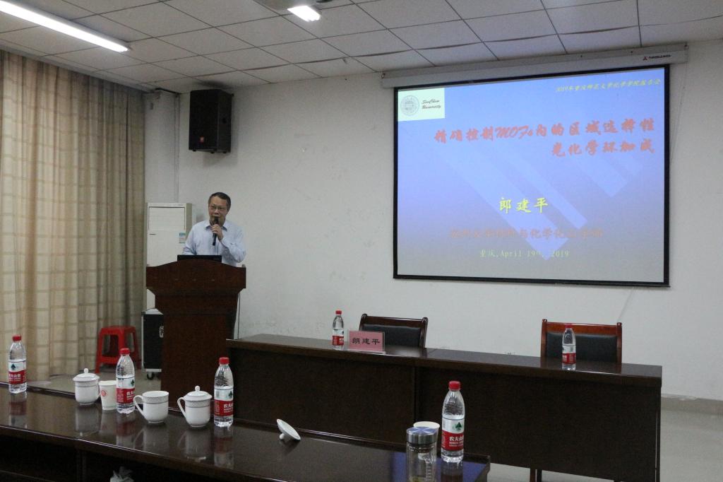 郎建平教授的报告题目为《精确控制MOFs内的区域选择性光化学环加成》。介绍了通过MOFs辅助的光化学环加成反应,比原有传统有机合成方法更加绿色、更加精准。