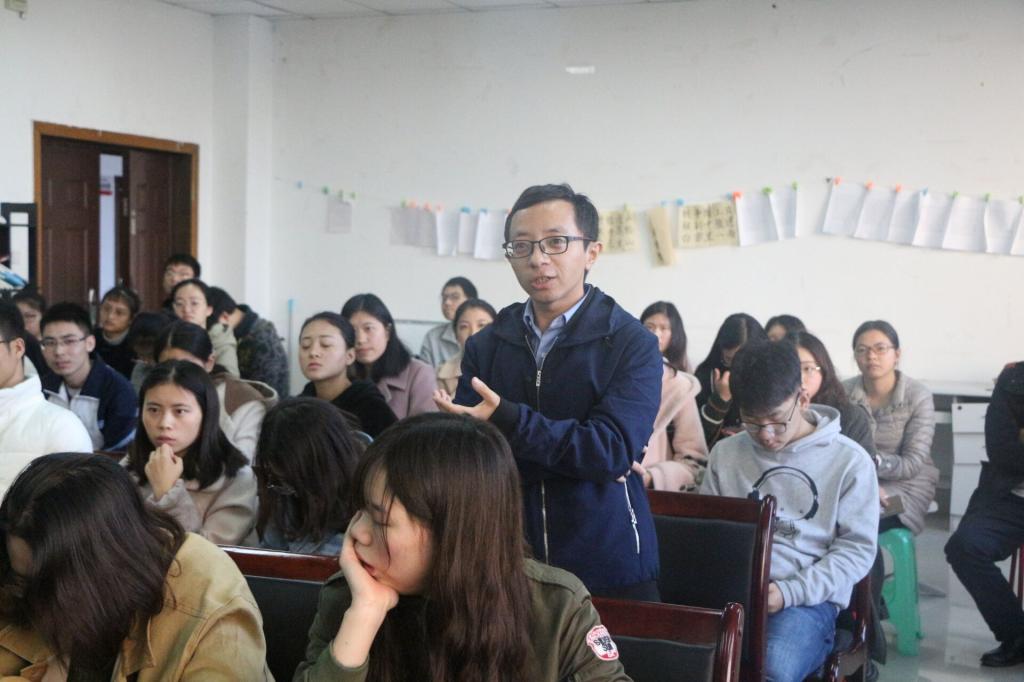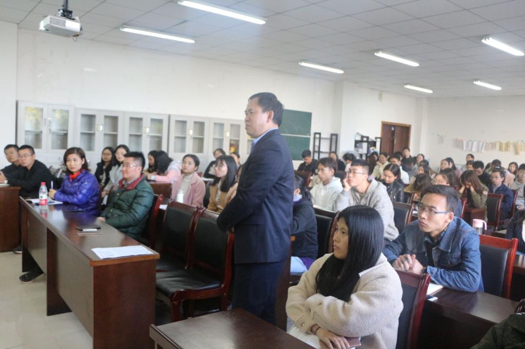 部分老师和学院各个班级的学生。下午3点,报告准时开始。