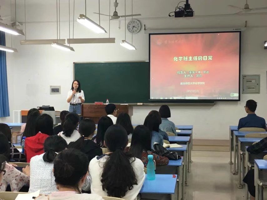 在弘德楼13104教室开展了有关化学班主任的日常主题讲座。主讲教师是来自重庆大学城一中的祝怡老师,参加讲座的还有咪咪爱