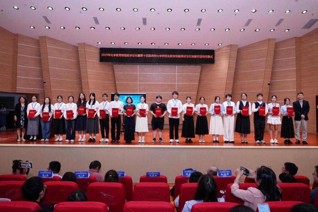 活动最后,主持人宣布获奖选手名单,嘉宾分别为本科生组、研究生组获奖选手颁发一、二、三等奖,对选手在本次教学技能展示中的优异表现予以肯定。这一环节进一步激励化学专业学生提升教学实践能力,为未来投身化学教育事业奠定基础。