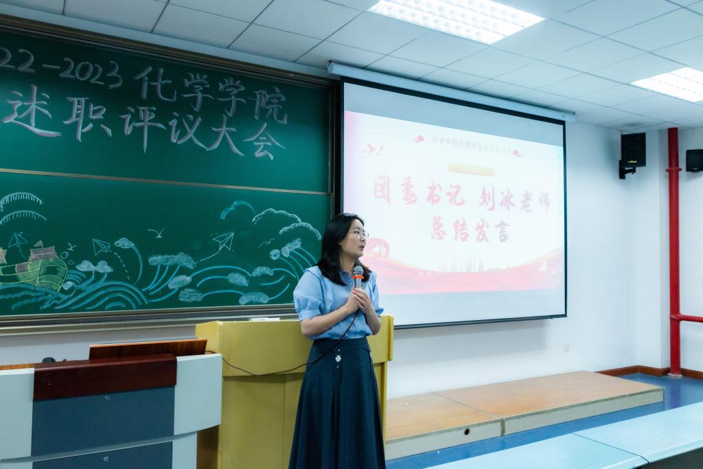 团委书记刘冰老师进行大会总结。她指出,这一学年以来,学生干部们尽心尽责,始终坚持初心不改,全心全意为同学们提供优质服务和坚实保障,我们的学生会在工作作风扎实、工作时效性强、工作创新性高等方面取得了长足的进步,这也为下一届团学会奠定了良好的工作基础,进一步明确了未来发展的方向。本届团学会是刘冰老师带的第一届学生会,也是经历疫情、改革等多项挑战的一届,目前他们的工作已经结束,心中万分不舍,感谢他们一年来的努力和付出,勉励她们要及时明确目标,不断严格要求自己,以更为积极进取的心态投入到接下来的学习和工作中,坚守初心和坚韧的品质,迎接大四的挑战,各方面都起到榜样和模范带头作用。