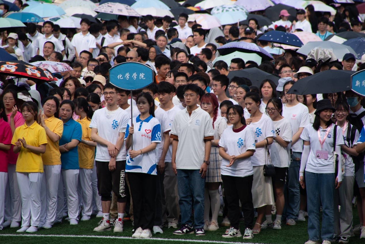 的表演方队青春阳光,充分展现化院学子的激情活力;看台上的观众热情欢呼,教师方阵更是向大家展现了咪咪爱