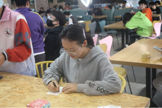 首先,志愿者先为同学们提供了手写明信片。在志愿者的引导下,在场的同学们充分发挥自主创造性和想象力,以自己独特的想法写出了自己对二十大胜利召开的祝福寄语和对新学期的希冀。其次,明信片写好后,将投入漂流箱中,此时同学们会得到一个号码,扫描场地桌上的二维码并填写自己的学院信息和号码信息后,参与抽奖箱抽奖,抽奖就会有小礼品相送。