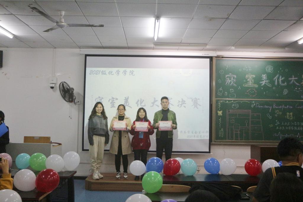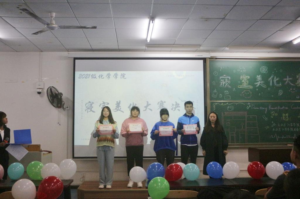 紧接着是评委点评环节。陈小雨老师高度赞扬了同学们的精彩表现,并表示希望大家可以从这个活动中体会到集思广益的魅力,体会到同学间互帮互助的温情。其次是团委学生书记王子豪进行点评,他提到寝室美化不仅仅是为了比赛,更是为了营造一个良好的生活学习氛围,让同学们可以沉下心去学习。最后进行颁奖典礼,由三位评委为优秀寝室颁奖并合影留念。