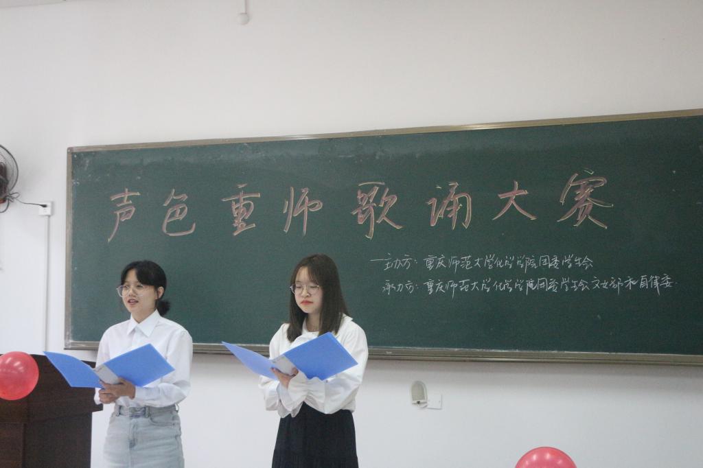 于弘德楼12305准时开展“声色重师歌诵大赛”。出席的嘉宾有:黄新雨、周奕瑶和黄丽。该活动主旨为丰富同学们的课余文化生活,让同学们有一个平台能够展现自己的才华。