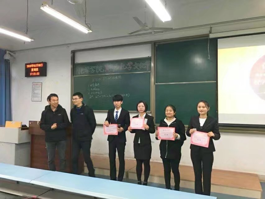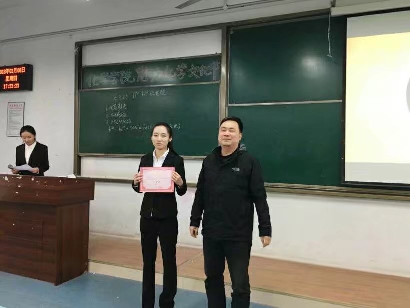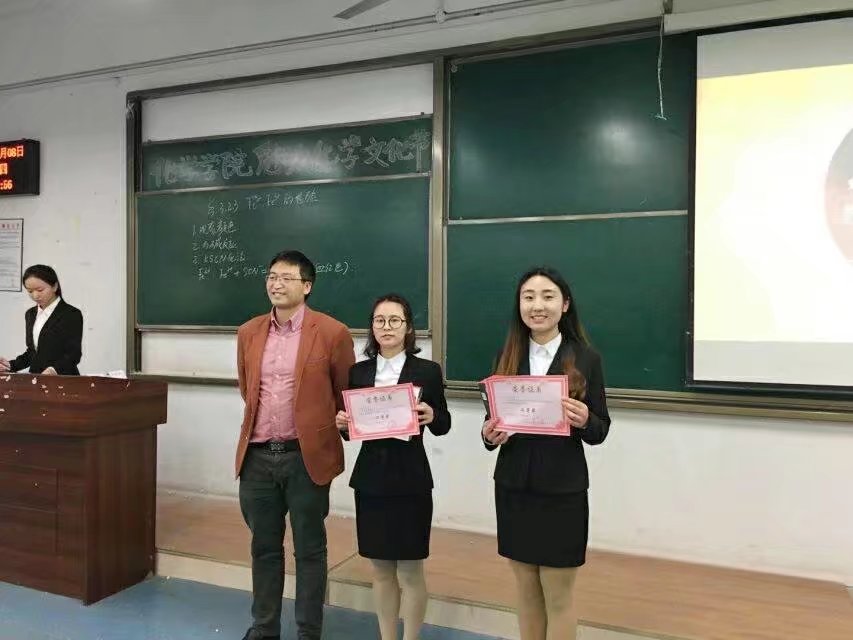 在许应华老师的评奖后,主持人宣布获奖名单:一等奖:郝静,二等奖:王春华、 尹巧,优秀奖:陈西、陈猛、林晓慧、刘翠竹,此次师范生技能大赛的成功举办, 为化院师范生提供了一个学以致用的实践与交流的平台, 对咪咪爱 提升师范生实践教学水平, 增强就业竞争力起到了积极的促进作用。更加突出了咪咪爱 第三届魅力化学文化节的精神内涵。