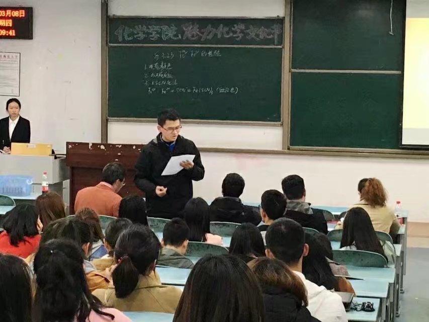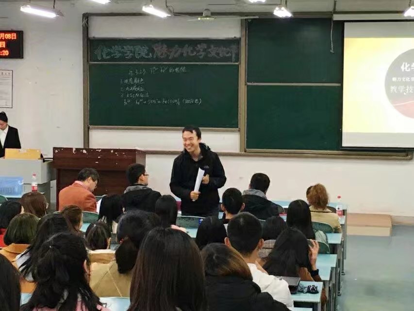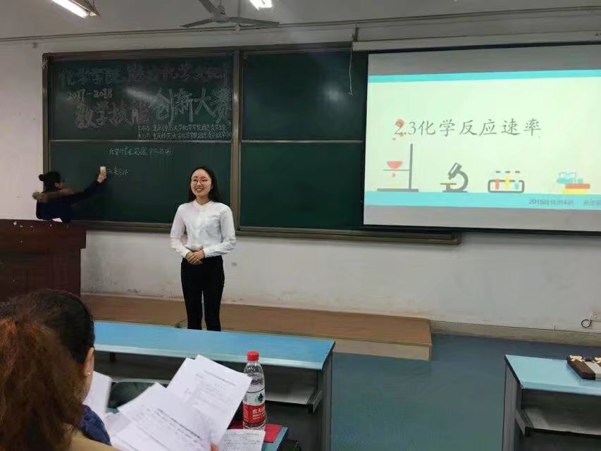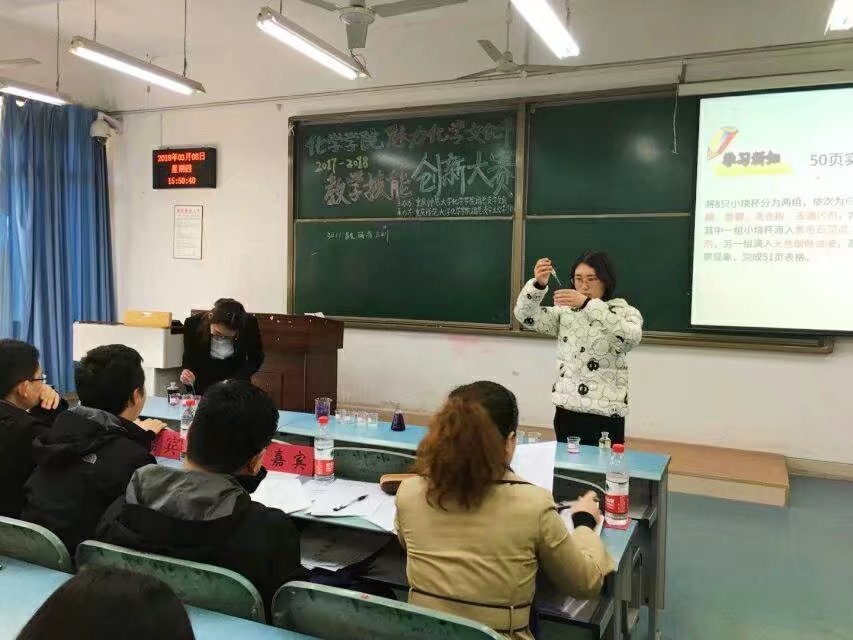 为了进一步增强咪咪爱 师范生实践应用能力和创新能力,提升师范生的综合素养,彰显师范特色,强化学生教学技能,同时响应化院第三届"魅力化学文化节",在3月8日下午弘德楼15102,化院针对2015级的同学开展了“教师技能创新大赛”。参赛者有郝静、尹巧、王春华等人,到来的嘉宾有杜小旺老师、许应华老师、曹书梅老师、胡晋川老师以及周琦老师。
