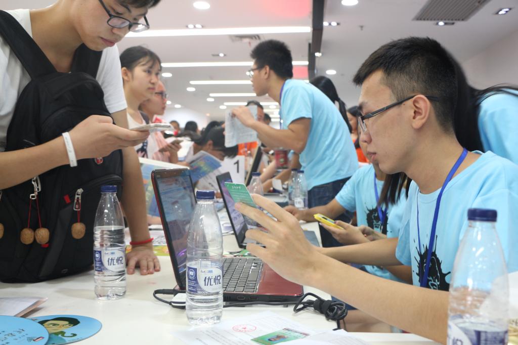 志愿者们已按周详的迎新安排在各个地点等待新生们的到来。博雅楼前,转角处,大本营,寝室周围,高举咪咪爱