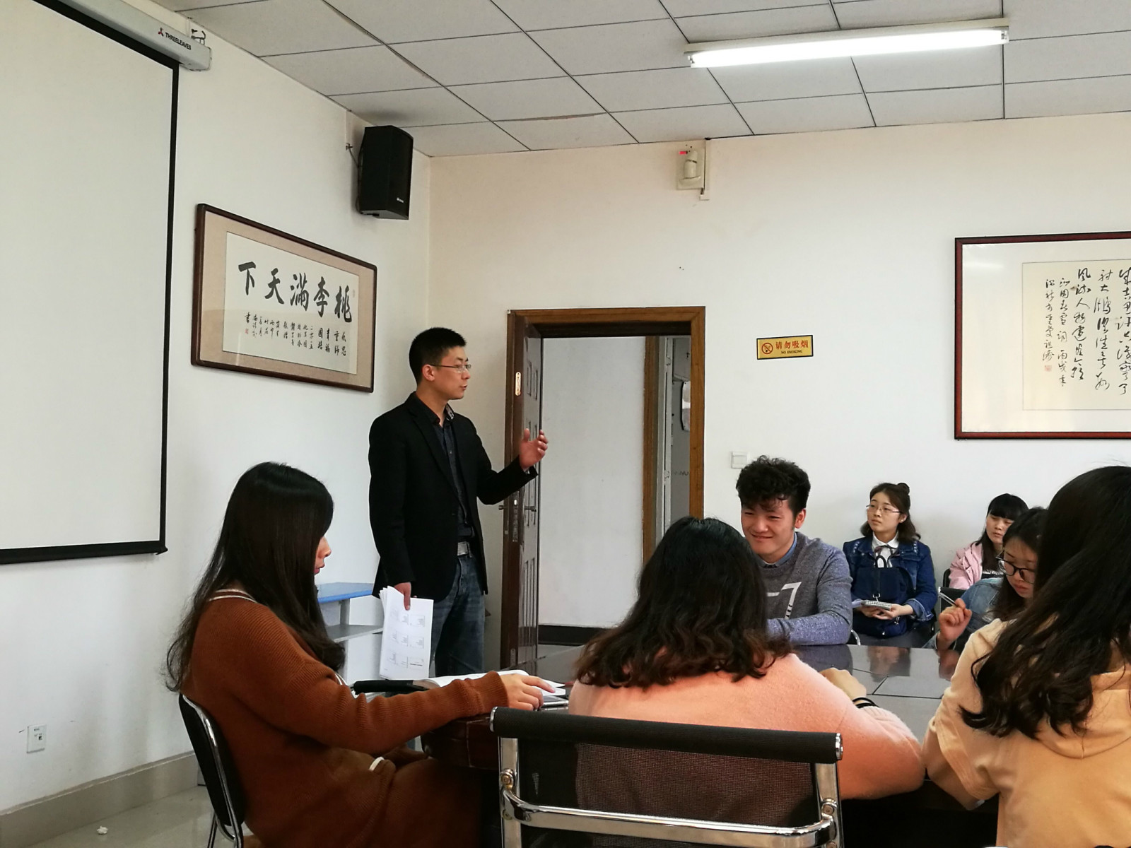 于斌老师分条陈诉了项目计划书包含九大方面,着重介绍了市场分析与预测和营销策略。而且周晴老师指出我们在计划书中描述项目特色和创新点时要截取其中的核心亮点。同学们在认真的听取于老师细致地讲解之后,对项目计划书的结构有了更加深刻的了解。