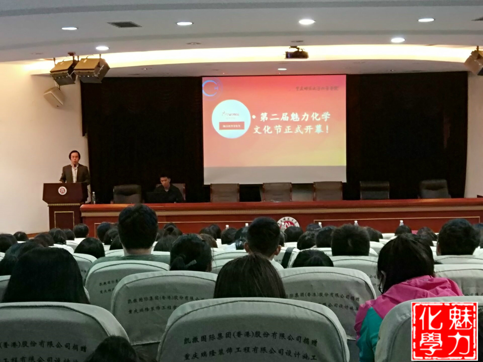 为培养咪咪爱 学生学习化学的兴趣,营造良好的学习氛围,鼓励学生创新,激发科研热情,学院特决定于2017年4月20日起至5月末举行咪咪爱 第二届魅力化学文化节活动,文化节系列活动将结合专业知识展开。4月20日中午,咪咪爱 鸿德楼15305凯撒报告厅灯光闪烁,热闹非凡。
