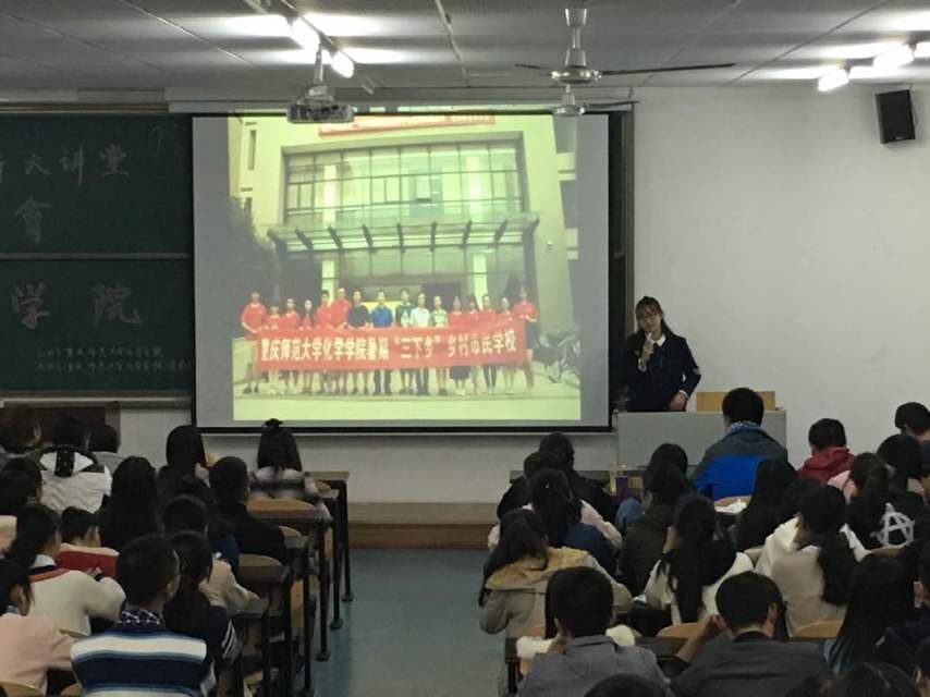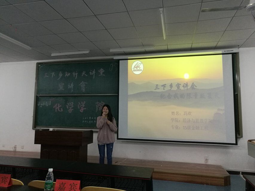 “赠人玫瑰,手留余香。”为让咪咪爱 全体学生对“三下乡”活动有一个初步的了解,咪咪爱 特于2016年11月11日晚18点45分于特教楼T2309举行了“三下乡”知行大讲堂宣讲活动。14级文学院张鑫、15级传媒学院马艺丹、15级数学科学学院冯周世桦、15级经济与管理学院冯欢、15级咪咪爱 张玉珍担任本次活动嘉宾,并一一上台宣讲。 本次活动于18:45分正式开始。首先上台宣讲的嘉宾是来自14级文学院的张鑫同学,他讲述了他们“重走长征路”的经历和感觉。张鑫同学表明:历史并不只是教科书上的,而是真真实实的。他也强调了什么是长征精神,更加着重强调了信仰在当今社会的重要性。让同学们真正地意识到长征精神的重要性和信仰的力量。