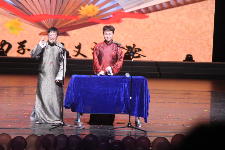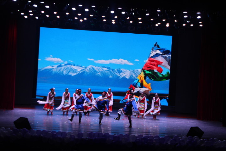 党总支书记胡先成老师献唱《鸿雁》一曲,以此向专程来此的西藏国培教师致以真诚的感谢与问候。晚会中,充满古典气息的舞蹈加伴唱《南山南》以及舞蹈《青花瓷》,将中国古典风雅展现的淋漓尽致,一姿一态无不彰显大国风范;《欢乐逗逗逗》、《大学那些事儿》以及《城里城外一家人》等小品以其别具一格的创意乐翻全场;晚会中所穿插的每一个藏族舞蹈与歌曲都让观众们感受到了藏区人民那最质朴真诚的心灵;晚会开始过半,学院还为观众们准备了充满惊喜的轻松游戏环节“摇一摇”以及弹幕抽奖,整个片场欢声笑语,洋溢不止;最后,一场由化院团学会人员带来的舞蹈《爱的华尔兹》,使晚会落下了帷幕。迎新晚会圆满成功!大家陆续离场,领导与嘉宾与部分工作人员进行了合影,将美好的印记留了下来。
