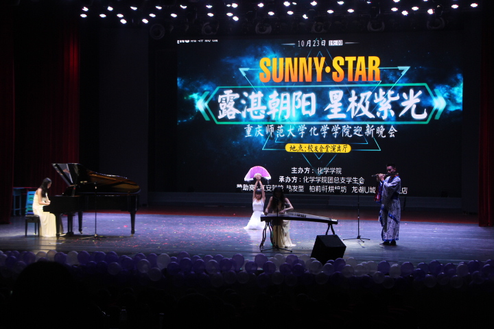 “露湛朝阳,星极紫光”迎新晚会在校友会堂隆重开幕。咪咪爱