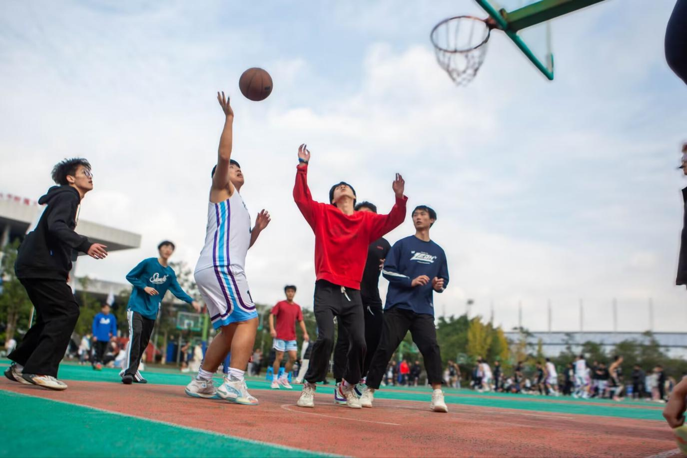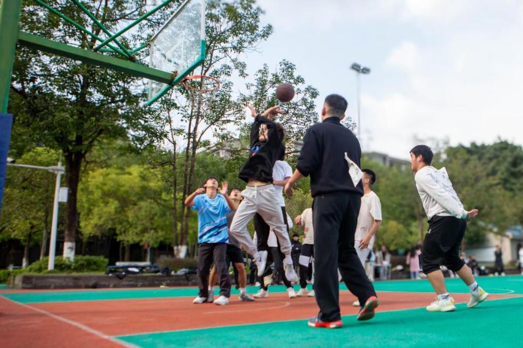 赛场上,球员们对每一个篮板球都奋力争抢,每一次防守都全力以赴,肆意挥洒着汗水,运球、传球、投篮,动作娴熟,配合默契,充分展现了团队协作的精神与坚韧不拔的毅力。