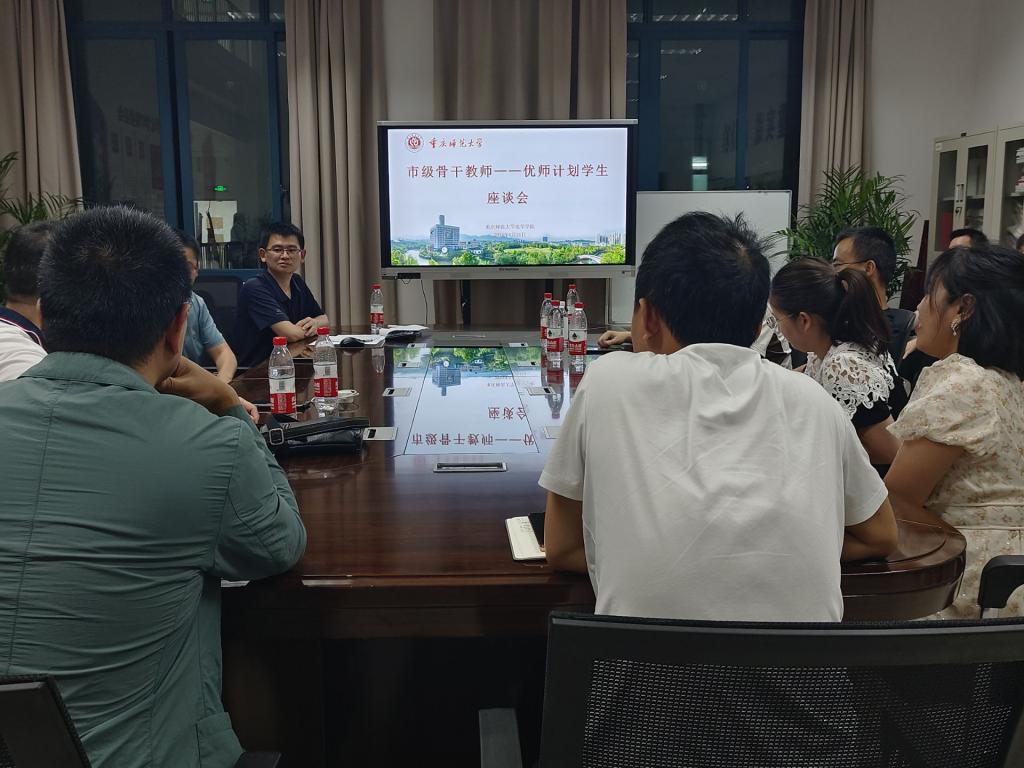 此次活动由胡晋川老师主持,“优师计划"的本科导师张家燕老师也参加了此次活动。同时,还邀请到了9名重庆市级骨干教师和20名23级的优师计划的同学参与座谈交流。