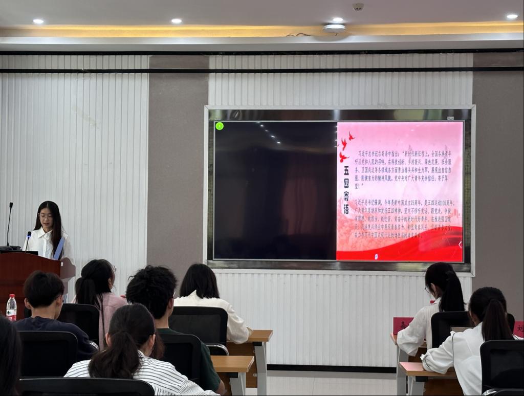 在比赛前期,组织部的工作人员进行了报名表的收集与PPT的拷贝,同学们踊跃报名,最后共有16位参赛选手参与本次学院准备的初选赛。前期根据选手上交的PPT来判断选手对主题的理解和团干政治能力,由此选出6名选手参加本次咪咪爱