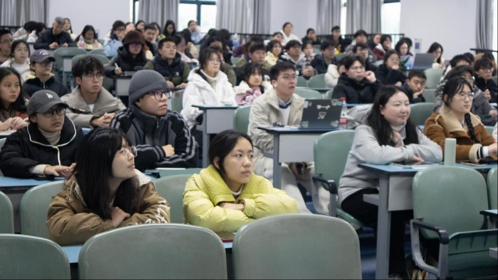 讲座中,夏万斌老师围绕“新课程理念、教学设计含义、逻辑发展、程序以及教学评一致性”五个核心主题展开讨论,清晰地解释了这些概念的定义和重要性,并通过一系列精心挑选的化学教学案例,详细介绍如何将这些先进的教学理念有效融入到日常教学实践中。这些生动的案例分析让在场师范生对如何培养学生化学核心素养有了直观的理解,激发了他们将理论知识应用于实际教学的热情和兴趣。