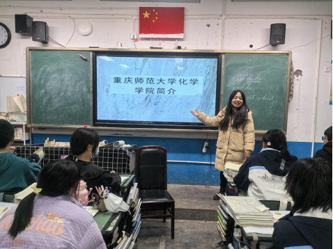 2022届毕业生谢奇岐在重庆市长生桥中学课堂上进行专业宣讲