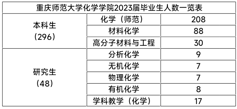 办学历史悠久,实力雄厚。现有化学(师范)、材料化学和高分子材料与工程3个全日制本科专业;有化学一级学科硕士学位授权点;有纳米物理与化学、化学生物学、光电材料化学3个二级学科硕士学位授权点,有学科教学(化学)1个专业型硕士学位点;化学专业是国家级“一流本科专业”建设点,是重庆市本科高等学校“一流专业”,化学学科为重庆市“十三五”重点学科。