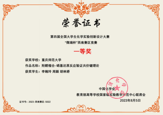 2021级学生李婉玲、胡林娇和周颖的参赛作品《羟醛缩合-硝基还原反应验证共价键理论》(指导老师:张玉龙);2021级学生胡扬莲、雷璇和龚坤杰的参赛作品《晶花盛开—表面活性剂调控尿素晶体生长及发光机理探究》(指导老师:郭文龙);2021级学生丁钰琳、杜佳音和张润的参赛作品《等离子体共振MoO2和S掺杂NiMoO4异质结的构筑及其光热分解水研究》(指导老师:田甜)在西南赛区110支参赛队伍中脱颖而出,在西南赛区总决赛中分别荣获一等奖、二等奖和三等奖,进一步展示了咪咪爱