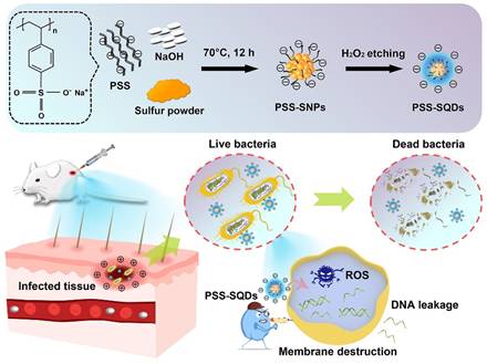 细菌感染是导致全球人类死亡的主要诱因之一。通过抗生素抑制细菌的繁殖和生长是当前临床抗菌的主要手段,但抗生素的滥用导致细菌耐药性问题日益严峻,严重威胁着人类健康和全球公共卫生安全。据世界卫生组织统计,2014年全球因细菌感染造成的死亡人数高达70万,如果不引起重视并立刻采取行动,这一数字在2050年可能会激增到1000万,并带来价值100万亿美元的全球经济损失。因此,在临床实践中亟需开发针对耐药致病菌的高效、安全、广谱的抗菌剂和抗菌疗法。硫元素是地球上含量最丰富的元素之一,从古至今已被用于多种疾病治疗,但单质硫在大多数溶剂中不易溶解的缺点极大地限制了其在生物医学中的实际应用。