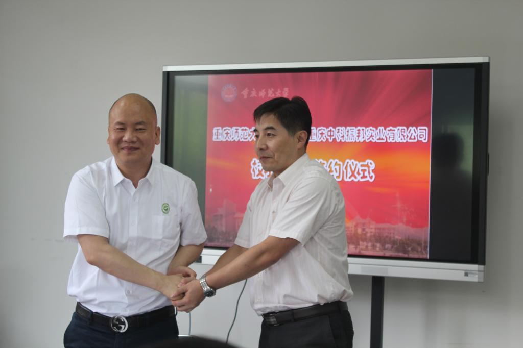 与重庆中科振邦实业有限公司进行了校企合作的签约仪式。重庆中科振邦实业有限公司的董事长熊昉、副董事长范武、副总经理熊颖、胡长全、熊凯豪以及咪咪爱
