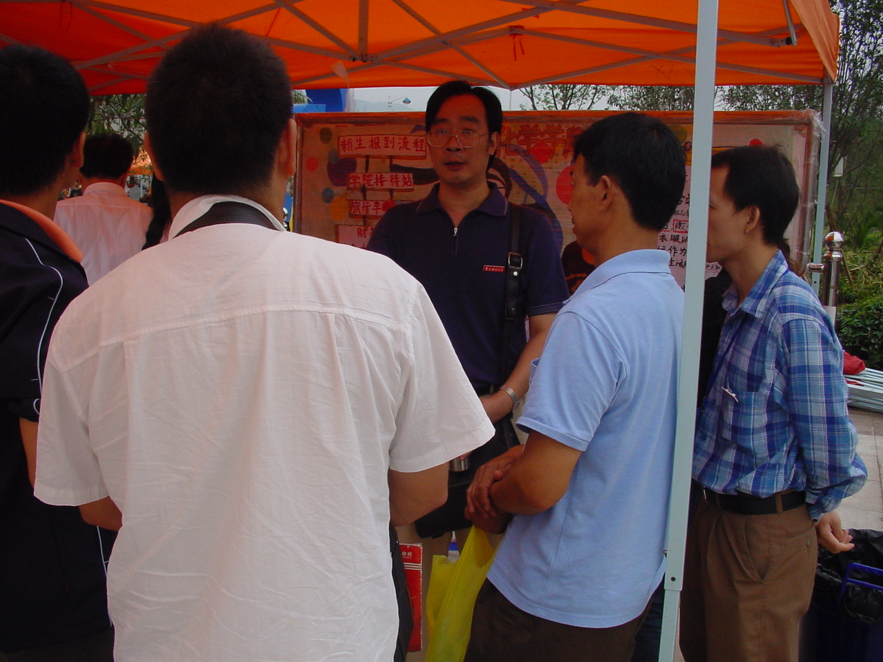 ……”,声音响彻整个“迎新”站,“同学,来,我帮你提东西……同学,这边走……”。下车接待处的“迎新”同学一边提行李,一边嘘寒问暖地将新生领到学院的接待站。在学长们热心帮助下,新同学的报名手续都进行得很顺利。学长们在带他们存行李、缴费、体检的同时,也不断叮嘱他们要注意财物的安全、军训期间要多注意身体,最后顺利地将他们送上去军营的校车。