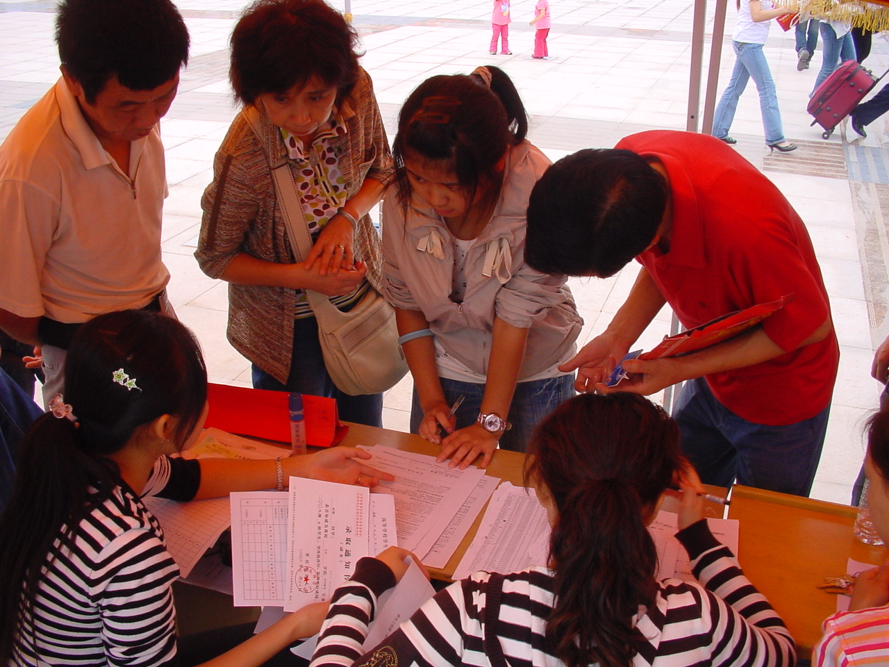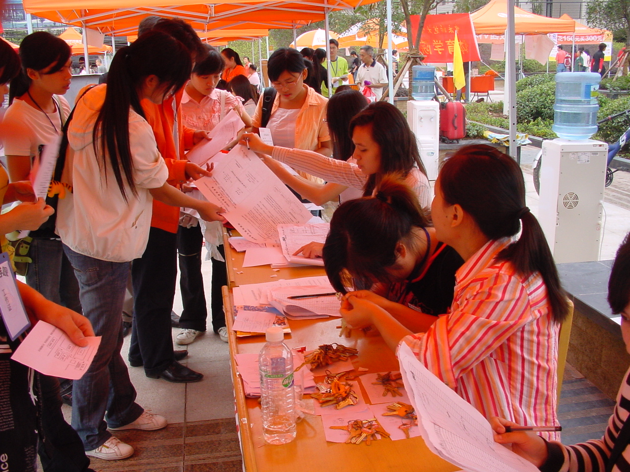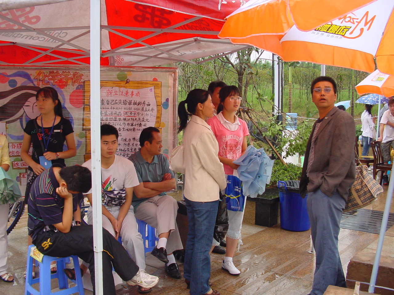 的工作在值班老师的指导下有条不紊地开展。不料天公不作美,下起了倾盆大雨,这为我们的“迎新”工作增加了不少难度,也给新同学和家长带来了诸多不便。与往年“迎新”工作不一样的地方是,今年,我们在新生接待处专门开设了一个家长休息区,在此,家长们除了可以遮风挡雨和歇息外,还可以通过海报等方式了解到学校、学院的概况以及学科专业、毕业后的就业方向等信息;在休息区,专门摆有凳子、矿泉水提供给家长们使用。同时,家长们还可以和“迎新”的同学交流以进一步了解学校和学院的历史。我们在“迎新”点开设休息区的举动大受家长们欢迎,家长们对我们学院的这种备至的关怀给予了很高的评价,兄弟院系也纷纷效仿。