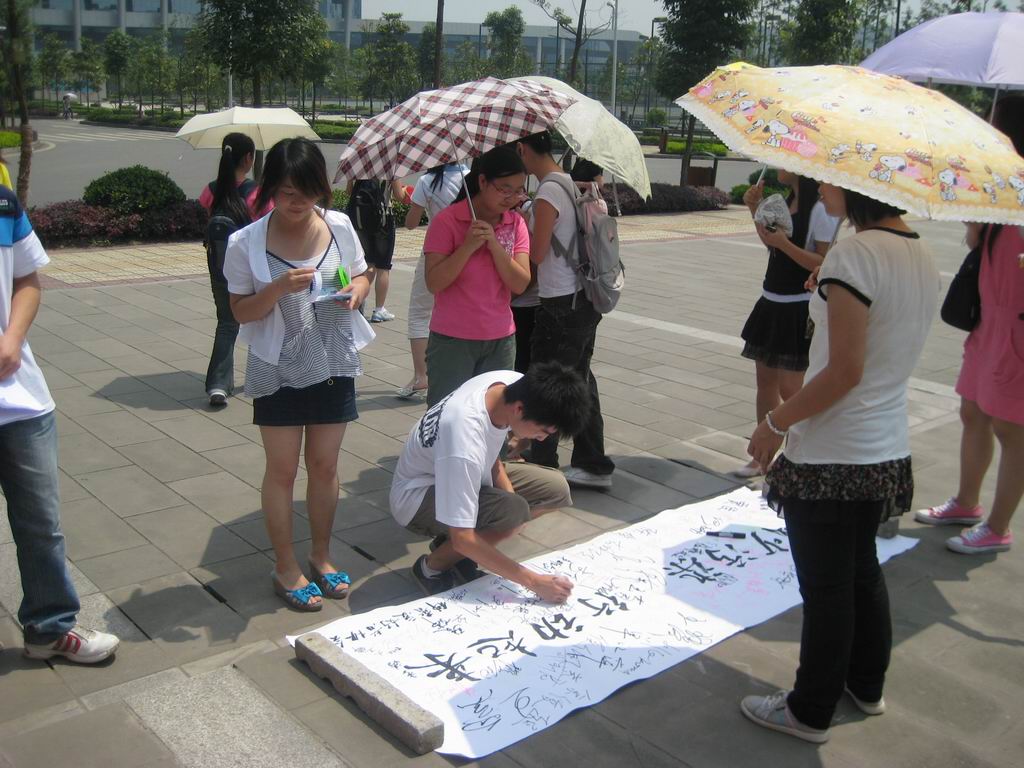 活动现场,科普协会会员为同学们宣传了绿色消费、生态人居环境等生态科普知识;开展了科普知识有奖竞猜活动;并展示了利用废旧物品改装的小制作;同时,还组织了千余名同学在题为“减少污染,行动起来”的长卷横幅上签名,以表达大家爱护环境、保护地球的愿望。