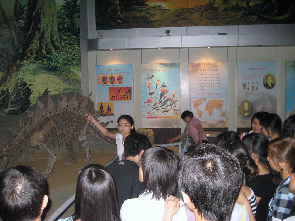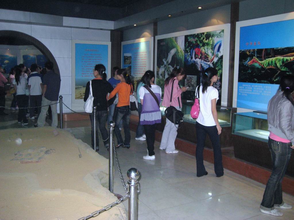 上午10点左右,全体师生到达目的地。首先,在博物馆解说员的引导下,师生们参观了恐龙化石陈列馆和古生物进化陈列馆。在陈列馆中,大家看到了各种各样的恐龙化石和古生物化石,对古生物的进化有了一个更全面的了解。紧接着进行了现场的模拟解说比赛,12名同学以一名解说员的身份,先后向现场观众绘声绘色地解说了恐龙灭绝的原因、不同种类恐龙的习性区别、古生物的发展演变,赢得了现场观众和同学们的一致好评。最后,高老师对此次活动作了总结,他指出实地参观学习是理论联系实际的重要途径,它有利于提高学生的专业素质,拓宽视野,增强学生的实践能力。