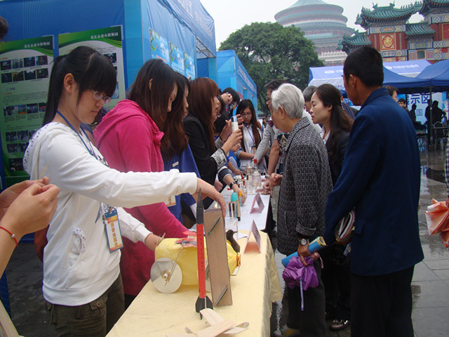 科普爱好者协会的科普志愿者们参加了正在人民大礼堂广场举行的“2011年重庆市科技活动周开幕式暨全民科技活动计划”的活动与重庆市民“科普互动”。辅导员高润祥老师一同前往。