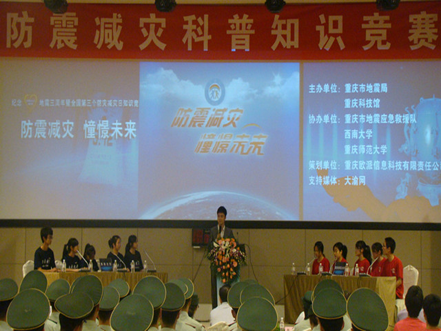 为纪念汶川地震三周年暨第三个全国防灾减灾日,2011年5月10日下午14点30分,由重庆市地震局、市科技馆主办的“防震减灾,憧憬未来”防震减灾科普知识竞赛在市科技馆多功能厅内举行。咪咪爱