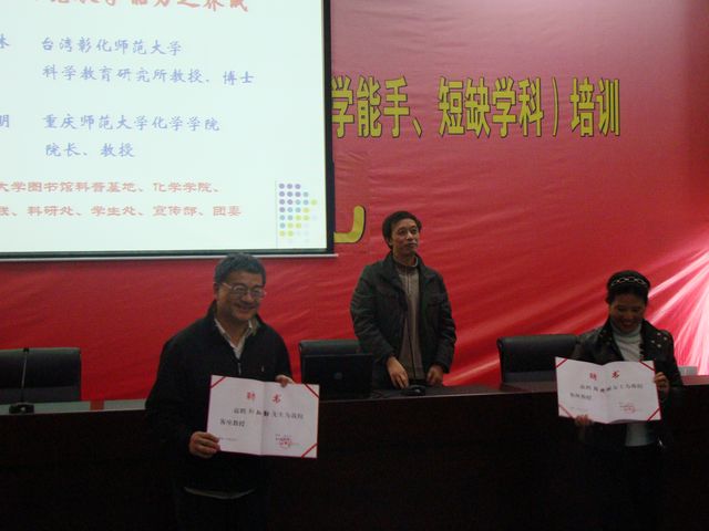 讲座开始前,梁院长为台中教育大学数理暨资讯学院院长靳知勤教授和彰化师范大学科学教育研究所段晓林教授颁发了受聘证书,正式聘请二位为咪咪爱