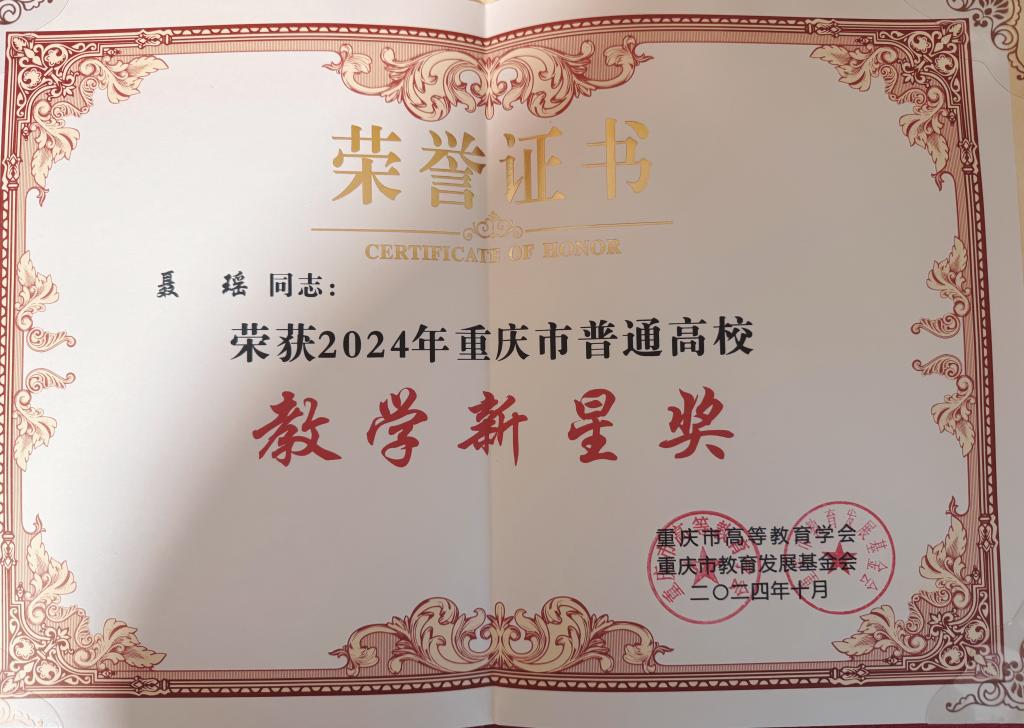 聂瑶老师获评2024年度“重庆市教学新星奖”