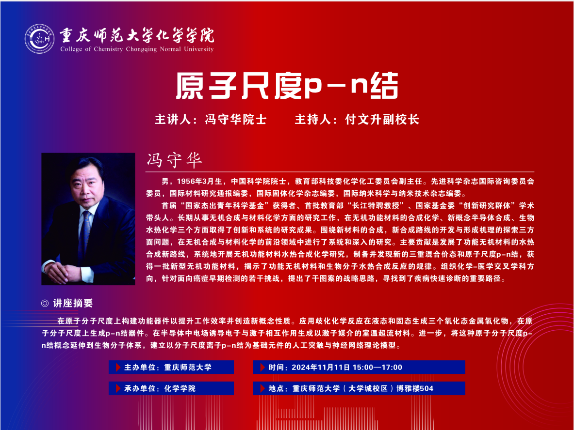 【学术报告预告】冯守华院士:《原子尺度p-n结》