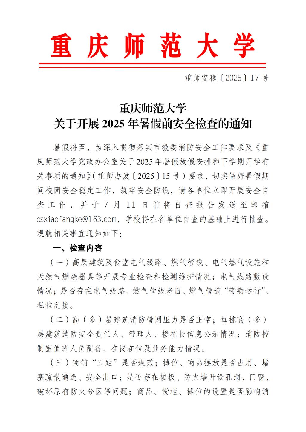 关于开展2025年暑假前安全检查的通知