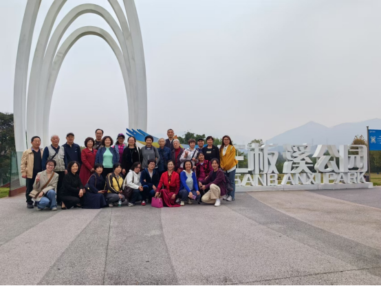 工会老师准时在师大苑正门外组织大学城附近的离退休老师集合,首先乘坐大巴车前往沙坪坝老校区与另外几位离退休老师汇合。上午11点左右到达本次秋游的目的地三板溪公园。在公园里,老师们一同欣赏了美丽的秋景。大家一起走走聊聊,享受自然风光的同时,也在回忆着往昔的时光岁月。